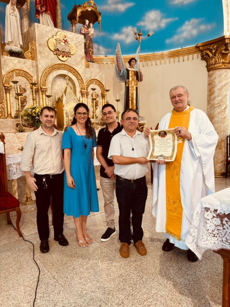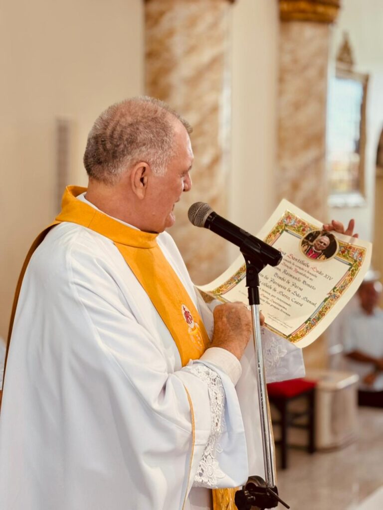 No último domingo, 19 de abril, a Paróquia São Manuel realizou a Santa Missa da Primeira Comunhão no Santuário Sagrado Coração de Jesus, às 09h. Logo após a comunhão, Monsenhor Nonato Timbó foi surpreendido com a entrega de uma Bênção Apostólica conferida a ele e aos fiéis da Paróquia São Manuel pelo Papa Leão XIV.