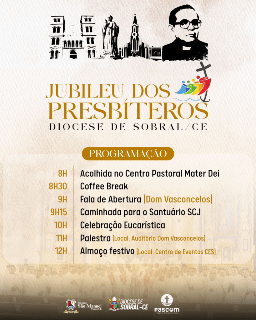 A Paróquia de São Manuel foi escolhida como sede do Jubileu dos Presbíteros da Diocese de Sobral/CE, que acontecerá no dia 04 de Agosto, onde é comemorada a festa de São João Maria Vianney e também o dia do Padre. A escolha foi acolhida com muita alegria pela Comunidade Paroquial, que terá a oportunidade de conhecer todos os Sacerdotes de nossa amada Diocese.